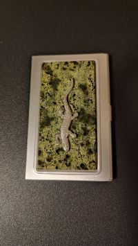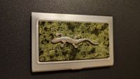 Карманная визитница со змеевиком и ящерицей цвет серебро размером 9,5х6х1 см и весом 80 г.