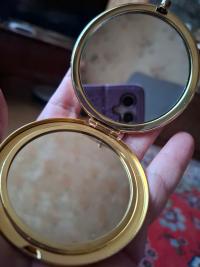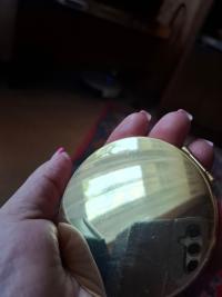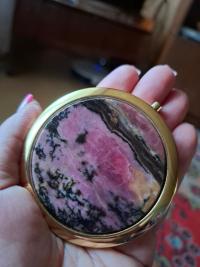 Карманное зеркальце круглое с родонитом цвет золото размером 7х7,5х1 см и весом 80 г.