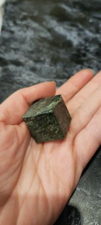 Кубик камень темно-зеленый змеевик 22 мм размером 22х22х22 мм и весом 30 г.