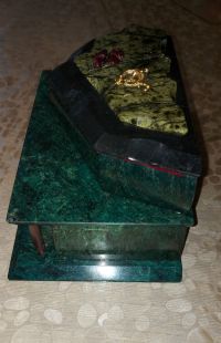 Ларец двухъярусный камень змеевик, лемезит 23x14x13 см размером 23х14х13 и весом 3000 г.