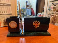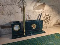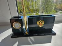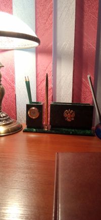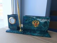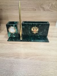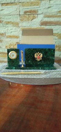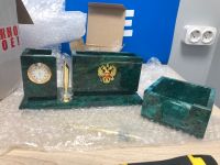 Прекрасный мини-набор»Герб России»,сделан в стиле ретро.Зеленый цвет уральского малахита( минерал) придает изысканность и красоту! Прекрасный подарок на память!Солидно, весомо, презентабельно и эффектно