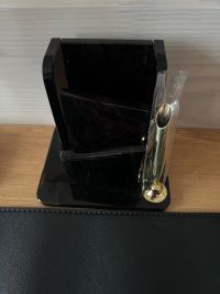 Письменные наборы из обсидиана имеют стильный дизайн и вдобавок они сделаны из натуральных и экологичных материалов.