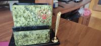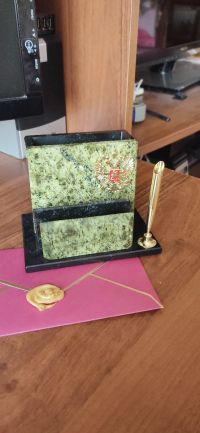 Карандашница с визитницей из змеевика размером 12х9х9 см и весом 700 г.