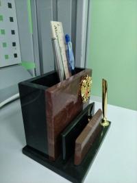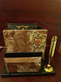 Карандашница с визитницей из камня лемезит размером 12х9х9 см и весом 700 г.