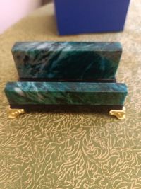 Подставка под смартфон камень змеевик размером 10х8,5х4,5 см и весом 340 г.