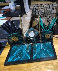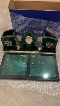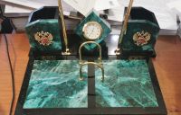 Письменные наборы из змеевика имеют стильный дизайн и вдобавок они изготавливаются из натуральных и экологичных материалов.