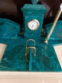 Письменные наборы из змеевика имеют классический дизайн и вдобавок они сделаны из безопасных и экологичных материалов.