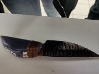 Нож каменный из обсидиана рукоять агат 20х4х2 см размером 20х4х2 см и весом 225 г.