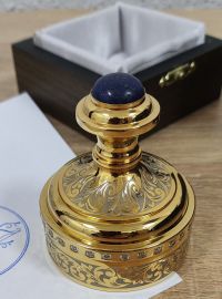Оснастка для печати "Герб России" камень лазурит Златоуст размером 5,5х5,5х6 см и весом 560 г.