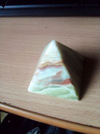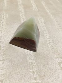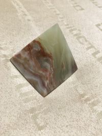 Пирамида изготовлена вручную из камня оникс, имеет размеры 5х5х5,6 см и весит 140 г.