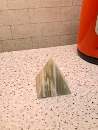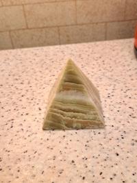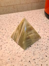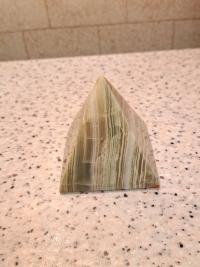 Пирамида изготовлена вручную из камня оникс, имеет размеры 6,3х6,3х7 см и весит 250 г.