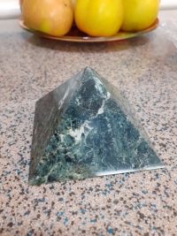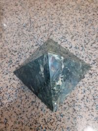 Пирамида из шабровского змеевика 9х9х6,5 см размером 9х9х9 см и весом 640 г.