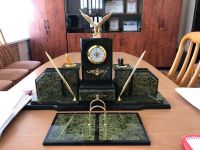Письменный набор из камня "Горный орел" змеевик размером часы 50х11х32,5 см, календарница 26х15х3 см и весом 10000 г.
