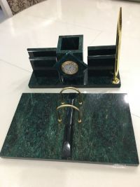 Письменные наборы из змеевика имеют стильный дизайн и вдобавок они изготавливаются из натуральных и экологичных материалов.