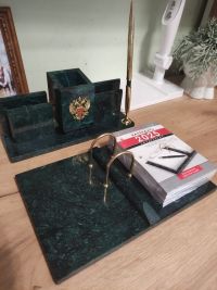 Письменные наборы из змеевика имеют классический дизайн и вдобавок они сделаны из натуральных и экологичных материалов.