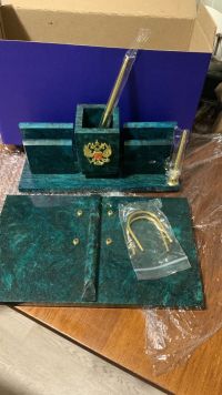 Часто задаваемые вопросы про Письменный прибор "Менеджер" с гербом РФ из змеевика 127057