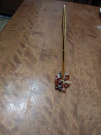 Ручка металлическая на подставке из камня агат размером подставка 50х50х70 мм, ручка 165х7 мм и весом 60 г.