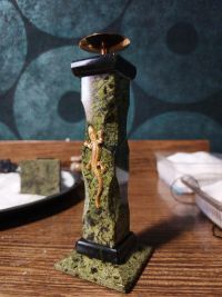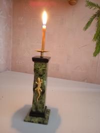 Подсвечник просто шикарен, аккуратная работа, ооочень симпатичная ящерица, змеевик фактуры и цвета просто умопомрачение.. берите эту вещь, не пожалеете, я о подобном думал 30 лет ..Отзыв