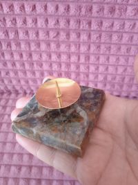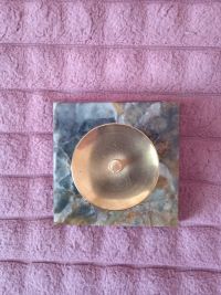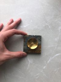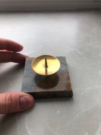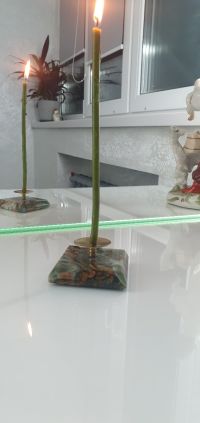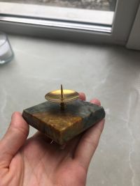 Подсвечник из офиокальцита размером 5,5х5,5х3 см и весом 100 г.