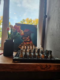 доска 41х41х2,5 см, клетка 4х4 см, высота фигур: пешка 3,5х3,5х6,5 см, король 3,5х3,5х8 см