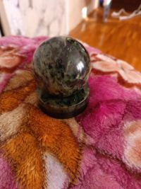 Прекрасный товар. Камень натуральный, красивый, очень успокаивающе действует!Красивый темнозелено-черный шар.