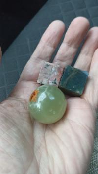 Достоинства: Целый, обсолютно гладкий и ровный. Видны полосы от лёгкого зелёного до светло-коричневых. Недостатки: Их нет.<br /> Комментарий: Первое знакомство с камнем оникс. Рассматривала структуру через увеличительное (ювелирное) стекло + просвечивала (первые 2 фото с просветкой). Сам по себе минерал не прозрачный.Отзывы с оценкой