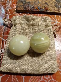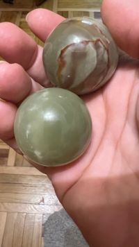Прекрасный выбор! Изготовленные из оникса, шары не только эффективно помогают снять напряжение и усталость, но и обладают привлекательным зелено-коричневым оттенком, что придает им элегантный вид. Отличное средство для расслабления и устранения напряжения в руках. Рекомендую этот товар всем!пришли целые