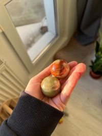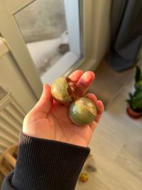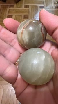 Аккуратные, симпатичные шары. Шлифовка идеальная, без каких-либо сколов и царапин. Размер чуть меньше 3,7. Хороши в руке и цвет красивый)Тактильно приятные, красивые, камень натуральный.