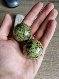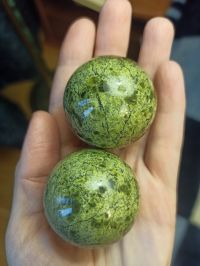 Шары для массажа 4 см из светло-зеленого змеевика 2 шт размером 4х4х4 см и весом 160 г.