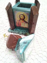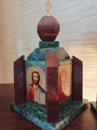 Очень маленькая, красивая часовенка, с красивой фактурой камня. Маковка коричневая и боковые колонны, остальные части зеленые с разводами. Фундамент тоже зеленый. Лики Святых и Спаса яркие, мерцают. Не знаю, камень ли это мерцает или Святые, но Празднично и Радостно. Сразу ощутился аромат ладана, словно он и в самом деле ЕСТЬ , верно Это Святые Возрадовались! Как близки граница и связь с Богом! Спасибо людям, которые делают Такую Красоту и Доброту, за Творца!Отзывы с оценкой