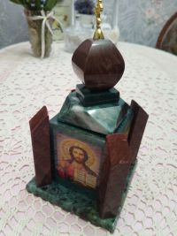 Шкатулка "Часовня" малая из лемезита и змеевика 11х11х20 см размером 11х11х20 см и весом 1700 г.
