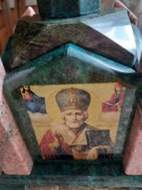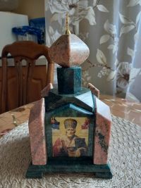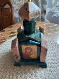 Шкатулка "Часовня" змеевик мрамор 14х14х24 см размером 14х14х24 см и весом 2900 г.
