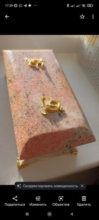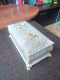 Шкатулка превосходная,купила в подарок,тяжеленькая,красивая форма и цвет очень нежный,аккуратно изготовлена,отполирована прекрасно,упаковка хорошая,все продумано,хорошая доставкаЦвет шкатулки нежный
