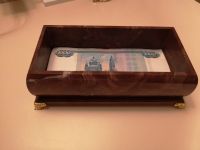 Достоинства<br /> Покупали шкатулку для денег, купюра входит идеально по размеру. Шкатулка смотрится шикарно, красивый цвет, смотрится богато. Покупкой довольна.<br /> Недостатки<br /> Комментарий<br /> Небольшие следы клея на верхней крышке (смотри фото 4), но в целом внешний вид не портят и уж тем более не мешают эксплуатации, поэтому балл за это снимать не стала.Аккуратно выполнена
