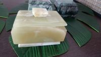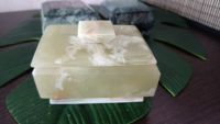 Шкатулка из оникса зелено-коричневая 10,5х7х6,5 см (3х4) размером 10,5х7х6,5 см и весом 620 г.