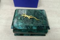 Шкатулка из шабровского змеевика с ящерицей 10х6,5х5,5 см размером 10х6,5х5,5 см и весом 610 г.
