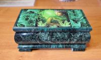 Шкатулка "Хозяйка медной горы. Малахит" из змеевика 16х8х7,5 см размером 16х8х7,5 см и весом 1230 г.