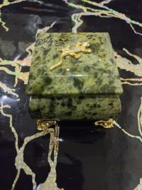 Шкатулка квадратная с ящерицей камень змеевик 6х6х5,5 см размером 6х6х5,5 см и весом 250 г.