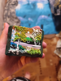 Шкатулка из камня с росписью "Весна" 8х6х5,5 см размером 8х6х5,5 см и весом 400 г.