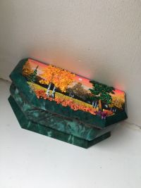Шкатулка с расписной крышкой Осень 17х7,5х6 см змеевик размером 17х7,5х6 см и весом 1000 г.