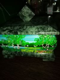 Шкатулка с рисунком "Лето" из змеевика 13х10х11 см размером 13х10х11 см и весом 1200 г.