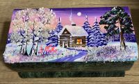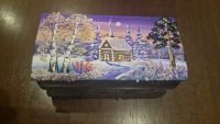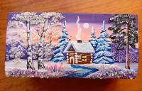 Шкатулка "Домик в зимнем лесу" камень змеевик 15х7,5х6 см размером 15х7,5х6 см и весом 1080 г.