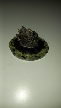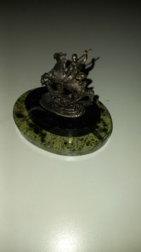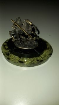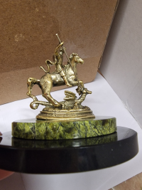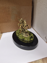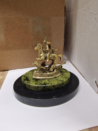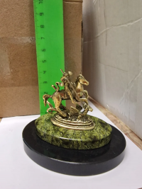 Декоративная статуэтка из бронзы "Святой Георгий" камень змеевик размером 7,5х6х7 см и весом 160 г.
