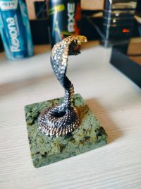 Статуэтка из бронзы "Кобра" на змеевике размером 5х5х6,5 см и весом 100 г.