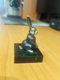 Статуэтка из бронзы "Зайчик сидит" камень змеевик размером 3,5х3,5х5,5 см и весом 60 г.