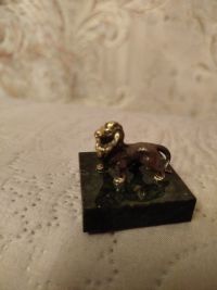 Бронзовая статуэтка "Лев малый" змеевик размером 3,5x3,5x4,5 см и весом 45 г.