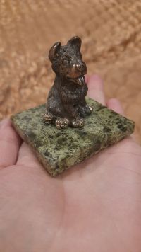 Статуэтка "Собачка средняя №2" из бронзы и змеевика размером 5х3х5 см и весом 160 г.