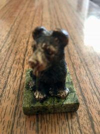 Статуэтка выполнена детально, поэтому как живая. Причëм это индивидуальная работа: фигурка изготовлена вручную, с эмоциями и отношением мастера. Постамент из камня служит красивой опорой, оживляет статуэтку (как будто собачка сидит на лужайке). Приятная вещица.Скульптурная фигурка выполнена реалистично