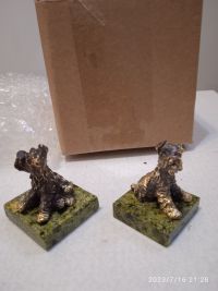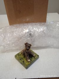 Статуэтка с фигуркой собаки "Ризеншнауцер" бронза змеевик размером 3х5х4,5 см и весом 86 г.
