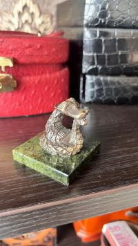 Статуэтка из бронзы на подставке из змеевика "Удав" размером 5х5х5,5 см и весом 150 г.